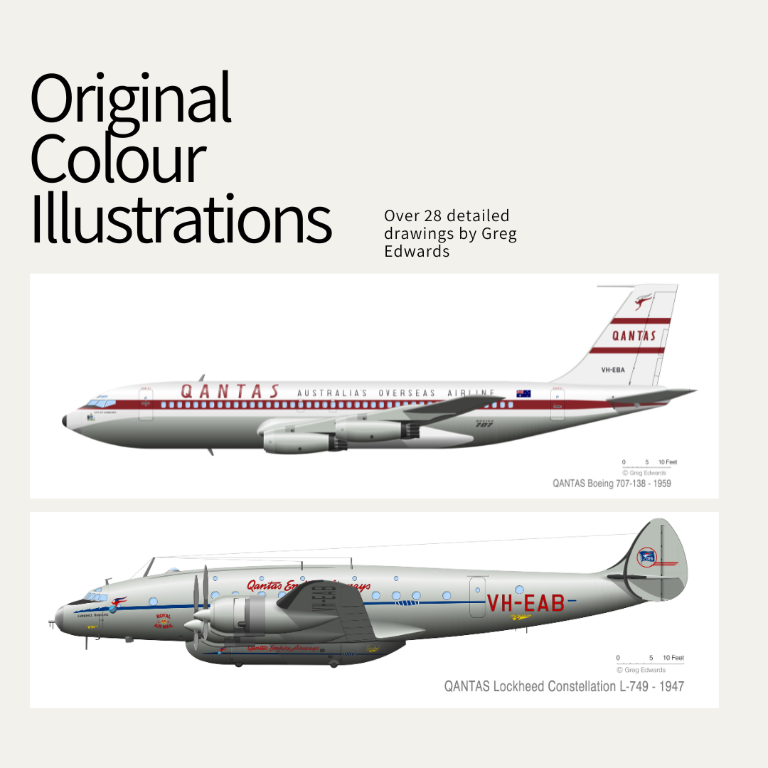 28 beautifully drawn and rendered full-size colour illustrations of Qantas’ most famous aircraft.