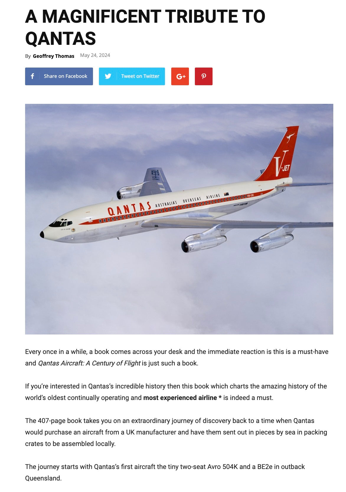 "This book is an important and comprehensive history of Australian commercial aviation. It is also a terrific read and visual feast for anyone interested in aviation. A wonderful achievement."